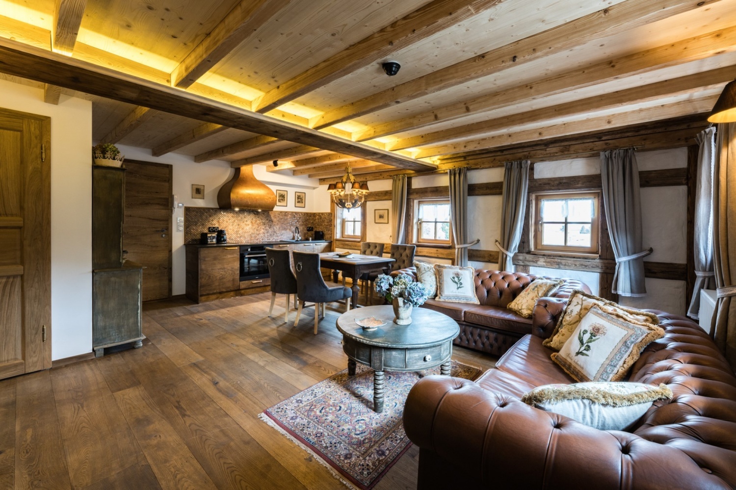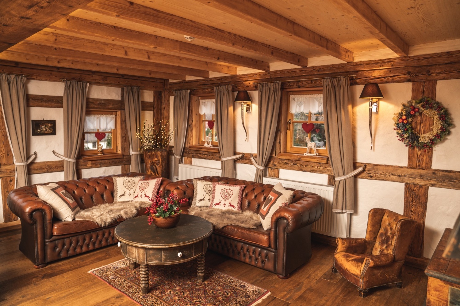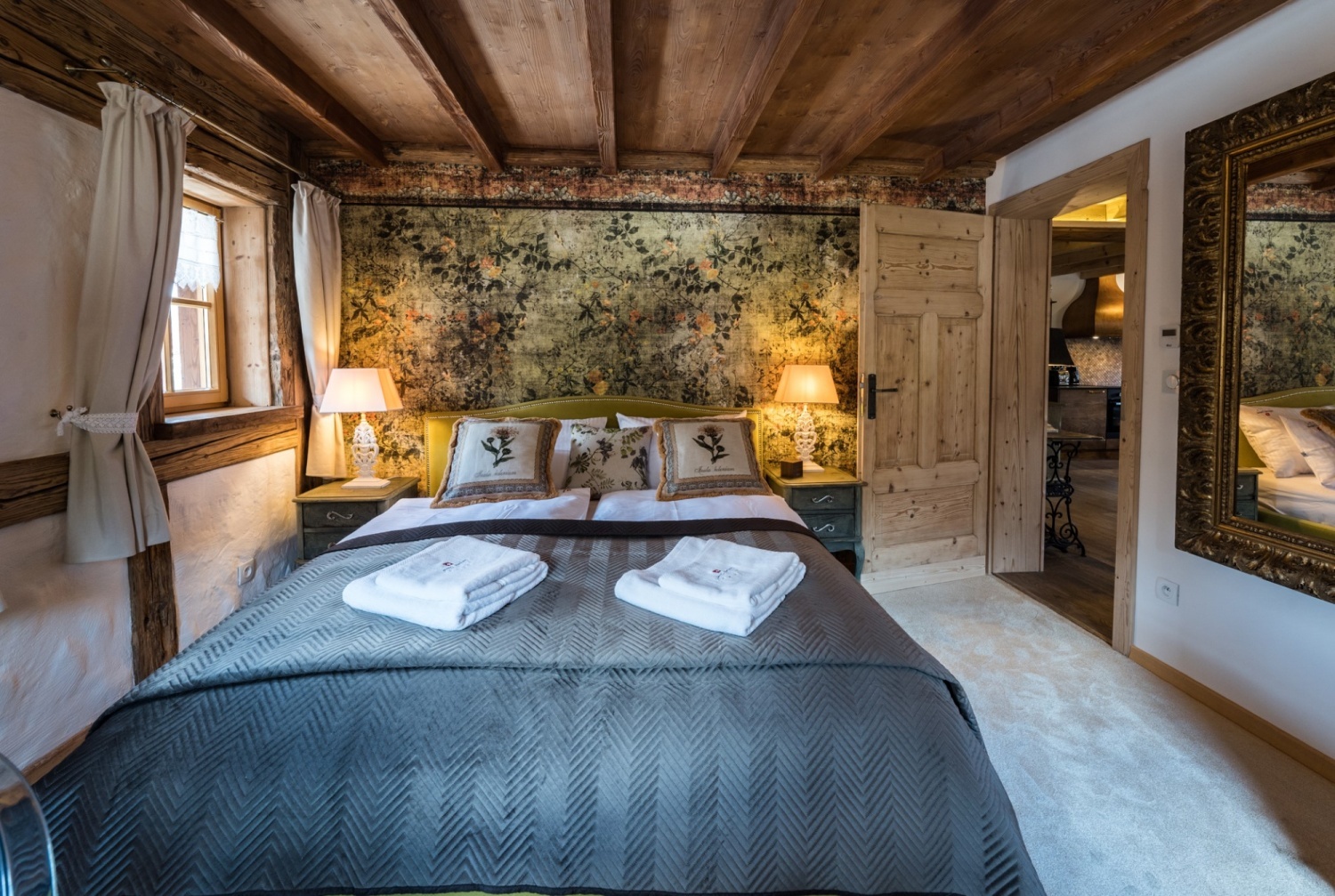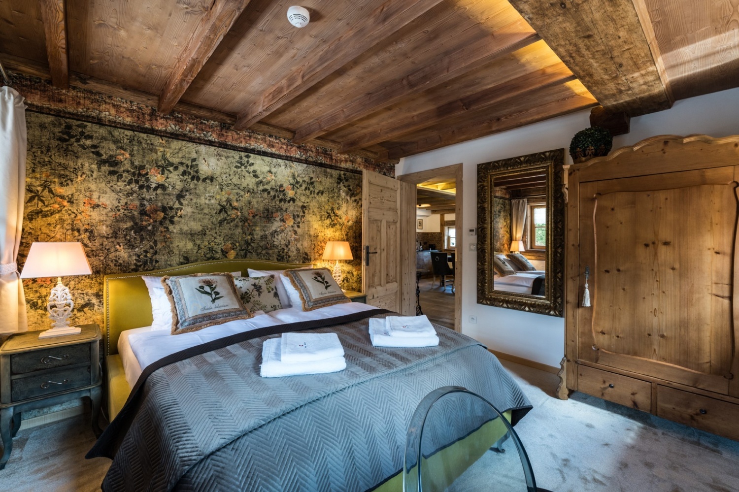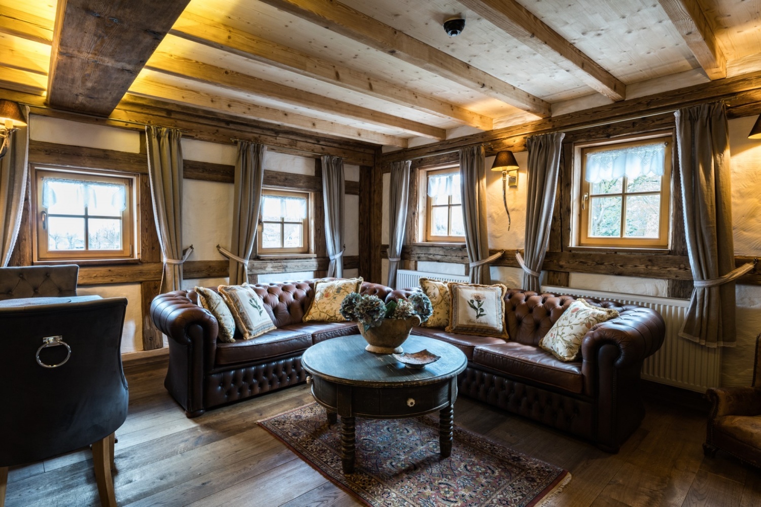 Architektura przypomina domy znajdujące się w Szwajcarii. Nieruchomość mieści się na 2 hektarowej działce graniczącą z lasem i rzeką.