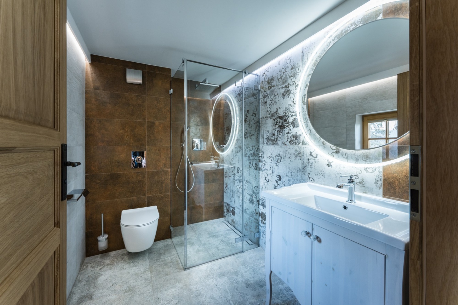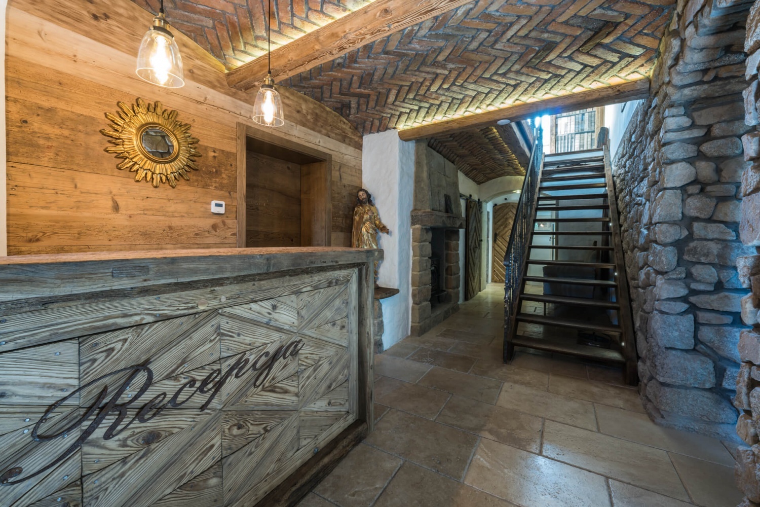 Architektura przypomina domy znajdujące się w Szwajcarii. Nieruchomość mieści się na 2 hektarowej działce graniczącą z lasem i rzeką.