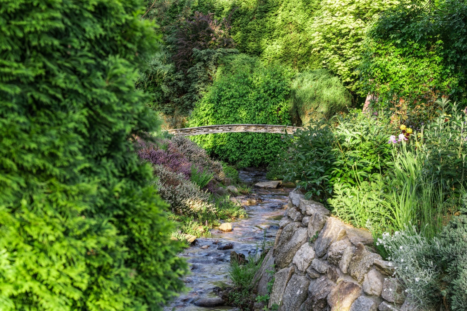 Wśród wspaniałego ogrodu przez teren przepływa naturalny górski potok tworzący kaskady i wodospady.