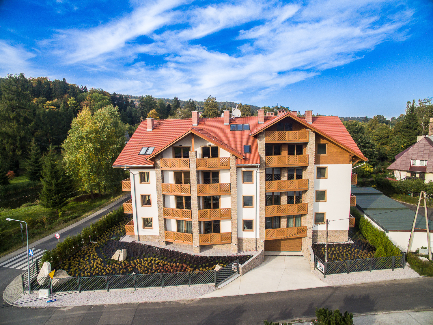 W otoczeniu gór, łąk, lasów i jeziorek, każdy znajdzie tu spokój i możliwość obcowania ze wspaniałą przyrodą. Największym atutem naszego obiektu, są nie tylko komfortowe mieszkania, ale również idealna lokalizacja z bardzo dobrym dojazdem. Z okien apartamentów rozciąga się niesamowita panorama na pasmo Karkonoszy, a w odległości 150 metrów znajduje się wyciąg orczykowy, to spełnienie marzeń dla miłośników gór i zimowych sportów.
